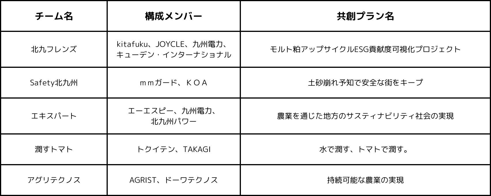 地域企業(北九州市をはじめ北九州を代表する企業)6社と全国のスタートアップ企業6社、自治体(北九州市役所)、市民(九州工業大学)の学生総勢46名が一同に会し、共創に向けた2日間の合宿を行いました。詳しくは開催レポートをご覧ください。