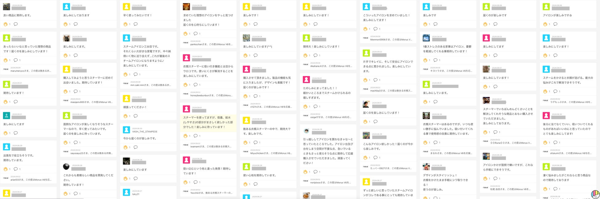 とMorusブランドへの高い信頼感から応援購入に至る方もおり、