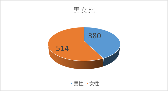 ■男女:男性380名/女性514名