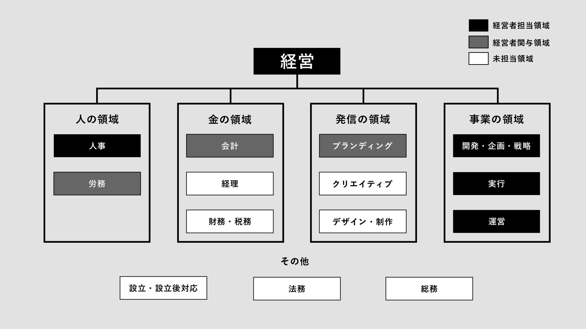 CxO事業では、経営者が本当に行うべき「夢を叶えるための事業づくり」や「共に夢を叶える仲間さがし」を優先して進めていける環境をつくるために、URAKATAがバックオフィスを担う体制を作っていきます。