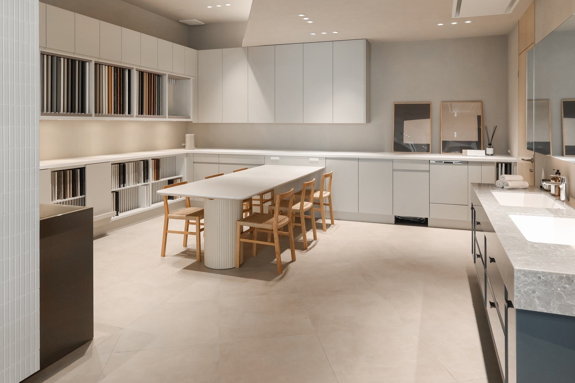 「ジャパンディ」をテーマにしたショールームは「クチーナのある暮らし」を感じて、イメージを膨らませていただけるよう、内装も展示品もひとつひとつ素材や設えを丁寧に選んだ、統一感のある空間に仕上がっています。
