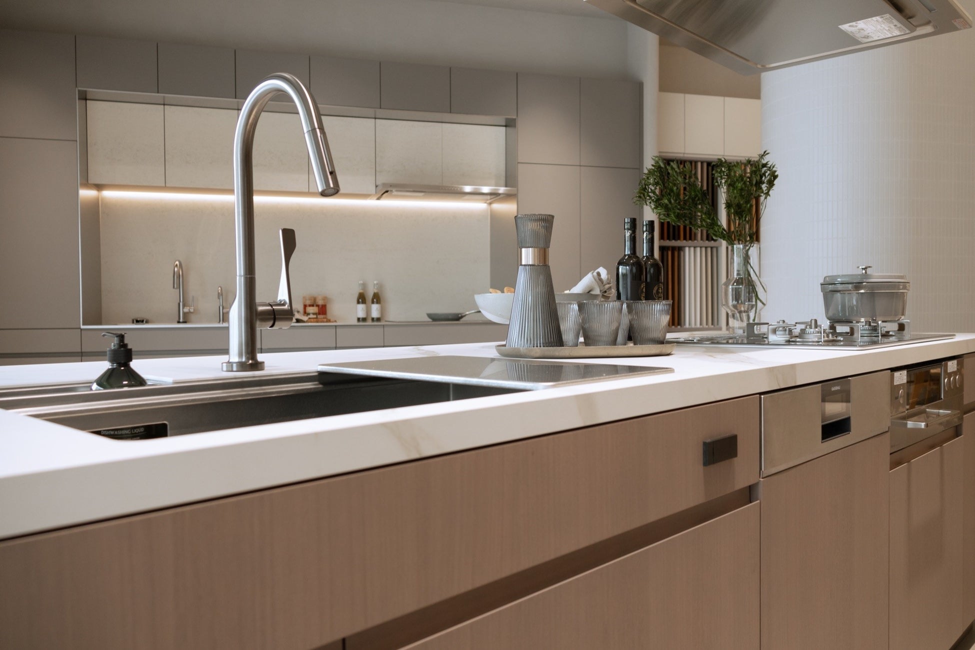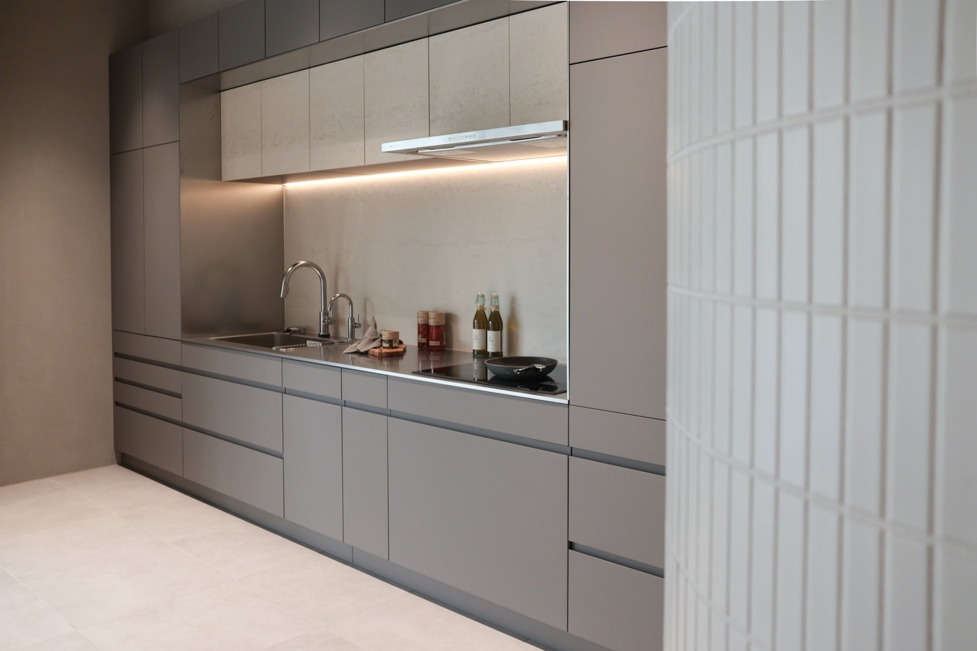 壁付I型のキッチンも細部の仕様や素材までこだわって仕上げた、クチーナならではの洗練されたデザインです。