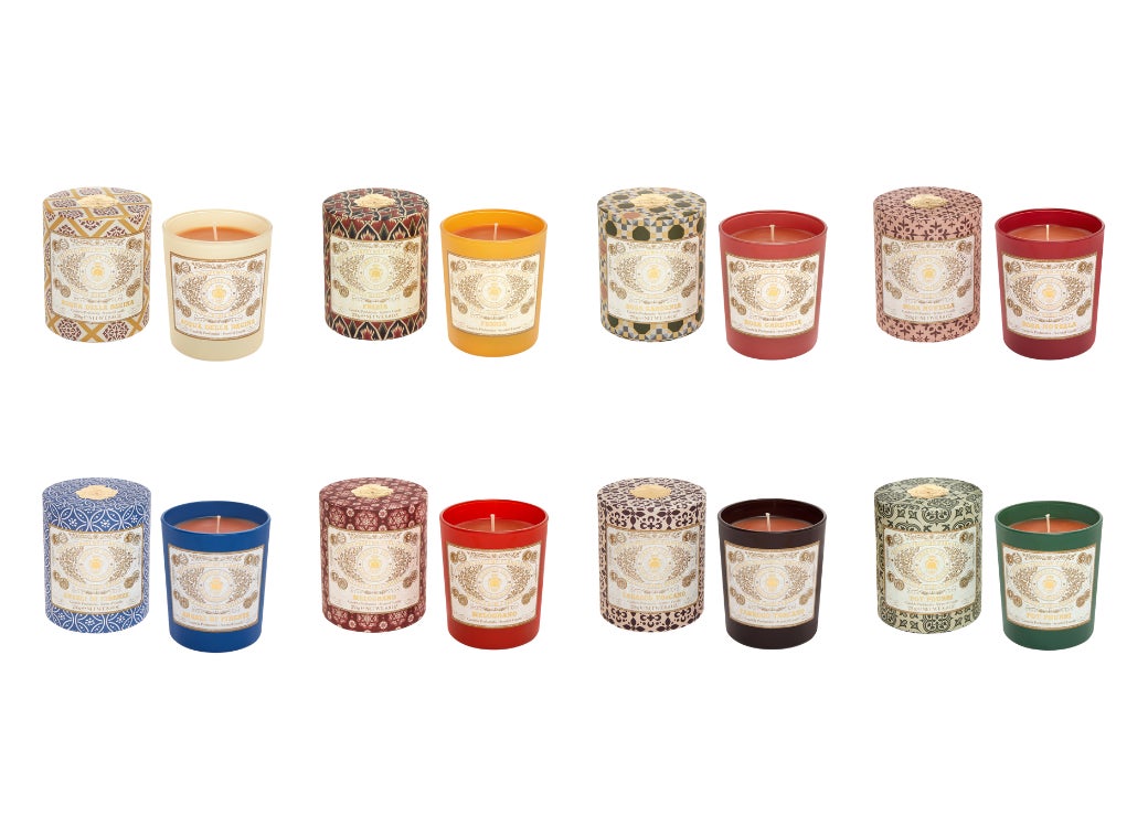 アクア・デラ・レジーナやポプリなどのアイコニックな8つの香りで構成される新しいキャンドルコレクションは、始まりの場所であるサンタ・マリア・ノヴェッラ教会(現在のフィレンツェ本店)の壁や天井を彩る伝統的な模様をあしらったボックスに丁寧に包み込まれています。そして、8種類のキャンドルボックスへは香りごとにそれぞれ異なる模様が用いられており、フィレンツェ本店ではあたかも宝探しを行う感覚で美しい模様を探していただけます。特徴的なキャンドルの蝋の色はトスカーナの伝統的な陶器であるテラコッタの色彩を表現しており、温もりある色合いが周りを優しく彩ります。キャンドルに火を灯し、普段のお部屋を中世の修道院薬局のような神聖で特別な空間に変身させてみませんか。
