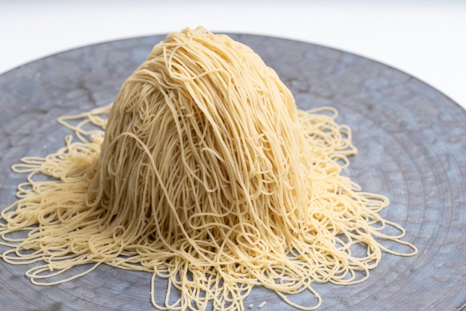 オーダーごとに専用機で搾られる1mm極細マロンクリームの驚くほど繊細な口どけをぜひ体感ください。京丹波和栗・利平和栗・イタリア栗、それぞれの個性が楽しめる“究極のモンブラン”