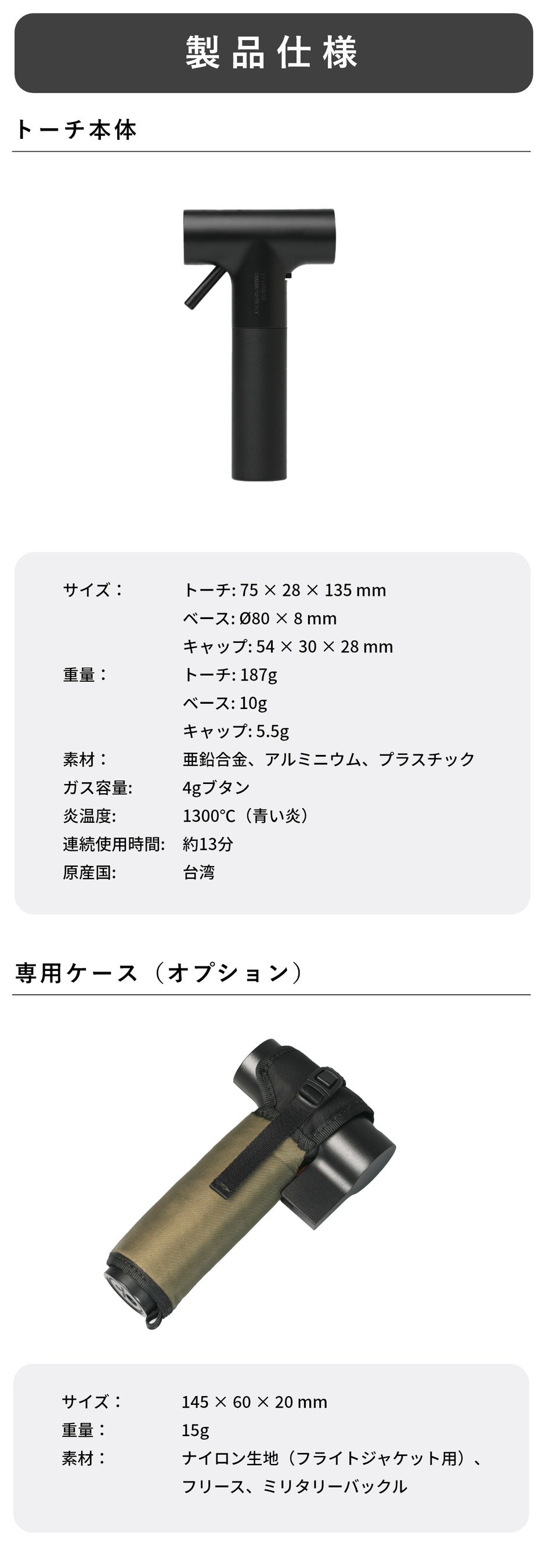 一般的なガスト―チは250~400g程度。T Torchはたったの185g。