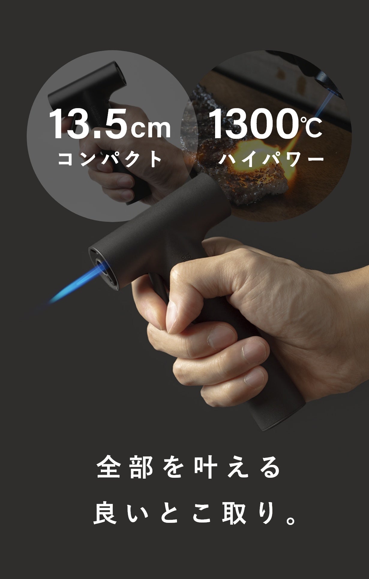 【手軽&パワフル】手に収まるサイズ感なのに、ワンプッシュで1300℃の青色炎が出せる利便性!
