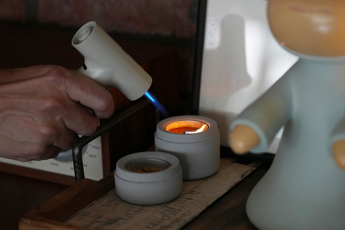 また、トーチ本体を安定して立てて置けるミニマルな専用ベースもあるためインテリアとしても映えます。