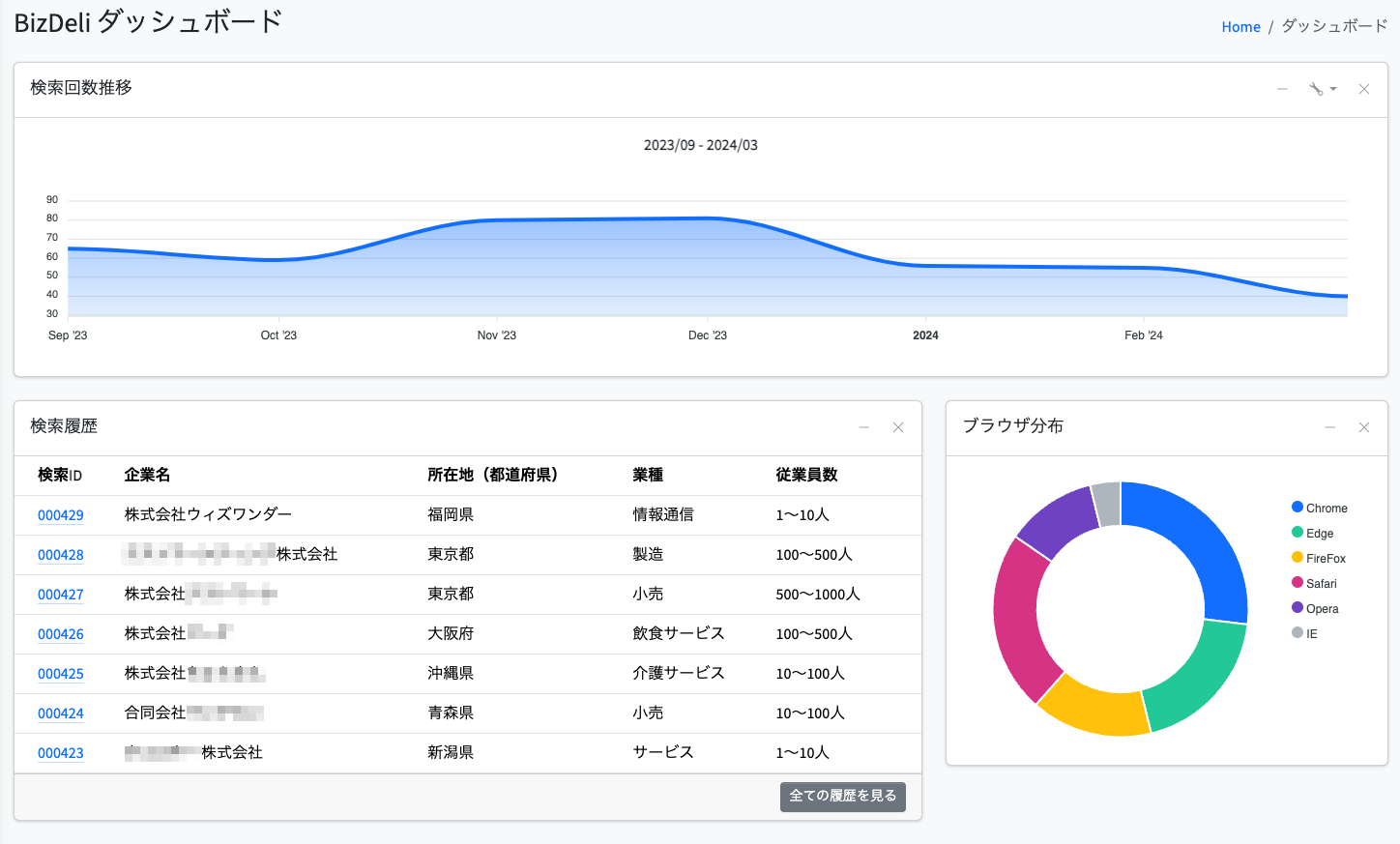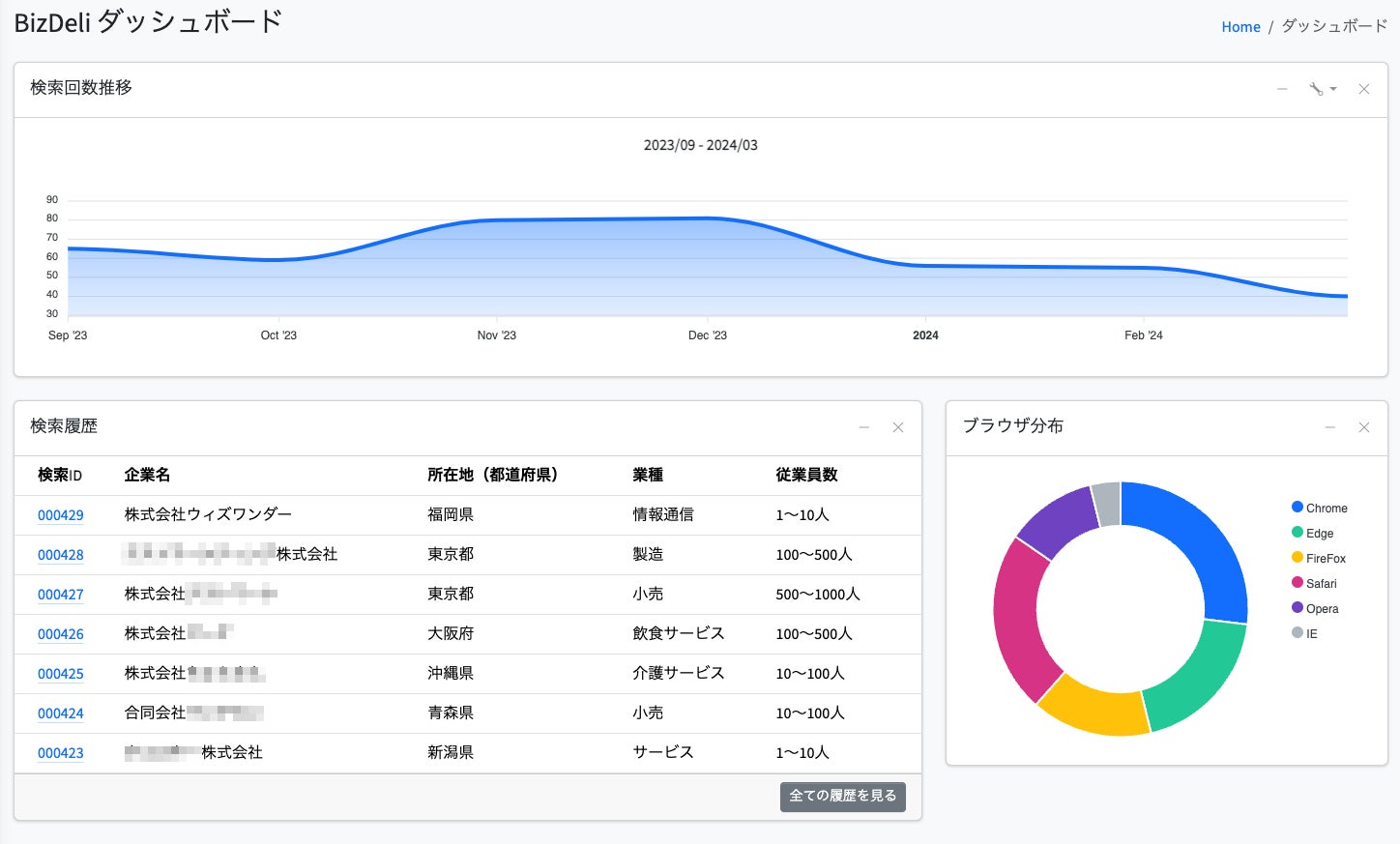 また、BizDeli を通して検索された企業情報は、お客様専用のマイページにて履歴や詳細情報の確認が可能です。