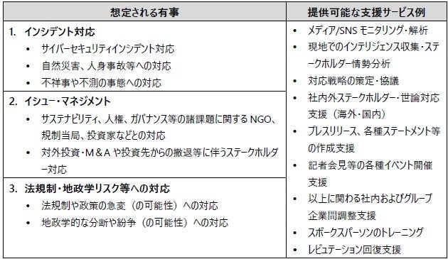 フライシュマン・ヒラード・ジャパン株式会社(東京都中央区、代表取締役社長 金山 亮、以下FHJ)は、日本企業が世界各国・地域で有事に遭遇した際のマスコミやステークホルダーへの対応を支援する「グローバル有事対応デスク」のサービス提供を開始します。グローバルPR/戦略コミュニケーションファームとしてフライシュマン・ヒラードが全世界に有する拠点網に加え、フライシュマン・ヒラードが属するオムニコムPRグループ(OPRG)のグローバルネットワークも駆使することで、日本企業の進出先やサプライチェーンに関わる国・地域で発生し得る様々な有事への迅速かつ戦略的な対応をシームレスに支援します。