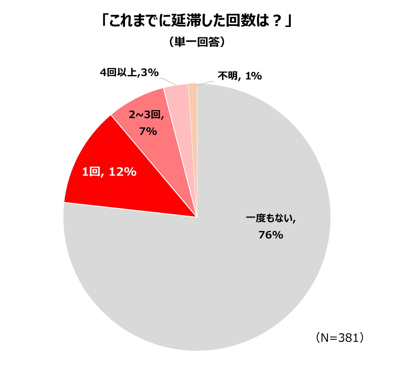今回、回答いただいた381人のうち、約75%が一度も延滞したことが無いと回答。
