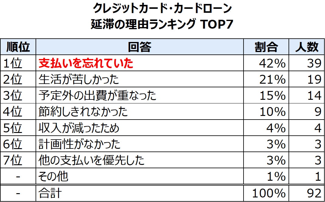 クレジットカードの延滞理由と対処法ランキング│381人が回答