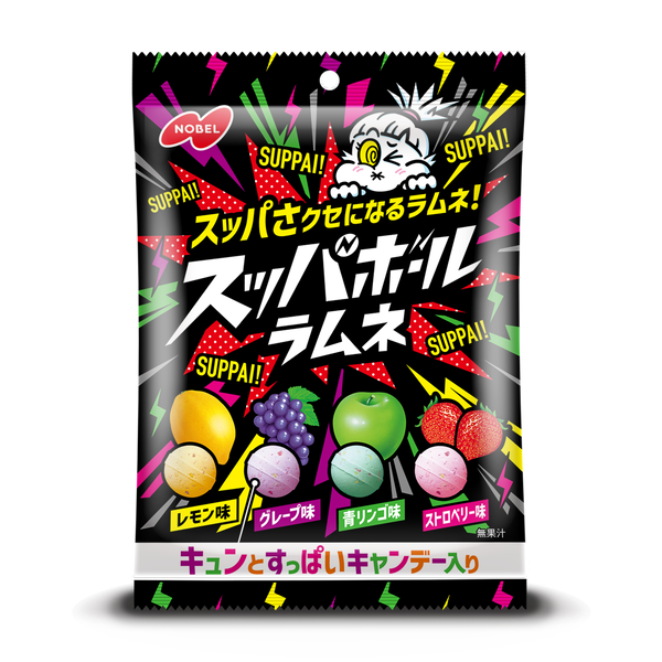 既存シリーズ「パチボールラムネ」とは違う体感を味わえる商品であることを表現するため、「スッパボールラムネ」の魅力である「クセになる酸っぱさ」と、楽しさが感じられるパッケージをデザイン致しました。