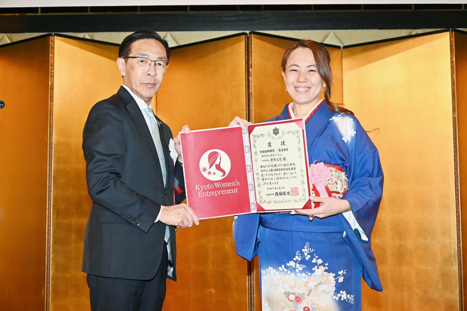 創業5年未満の「人々の生活向上や地域社会・経済の活性化に寄与する女性起業家のビジネスモデル」を全国から公募した同賞では、京都府知事賞の最優秀賞を受賞、3月3日に授賞式に参加しました。