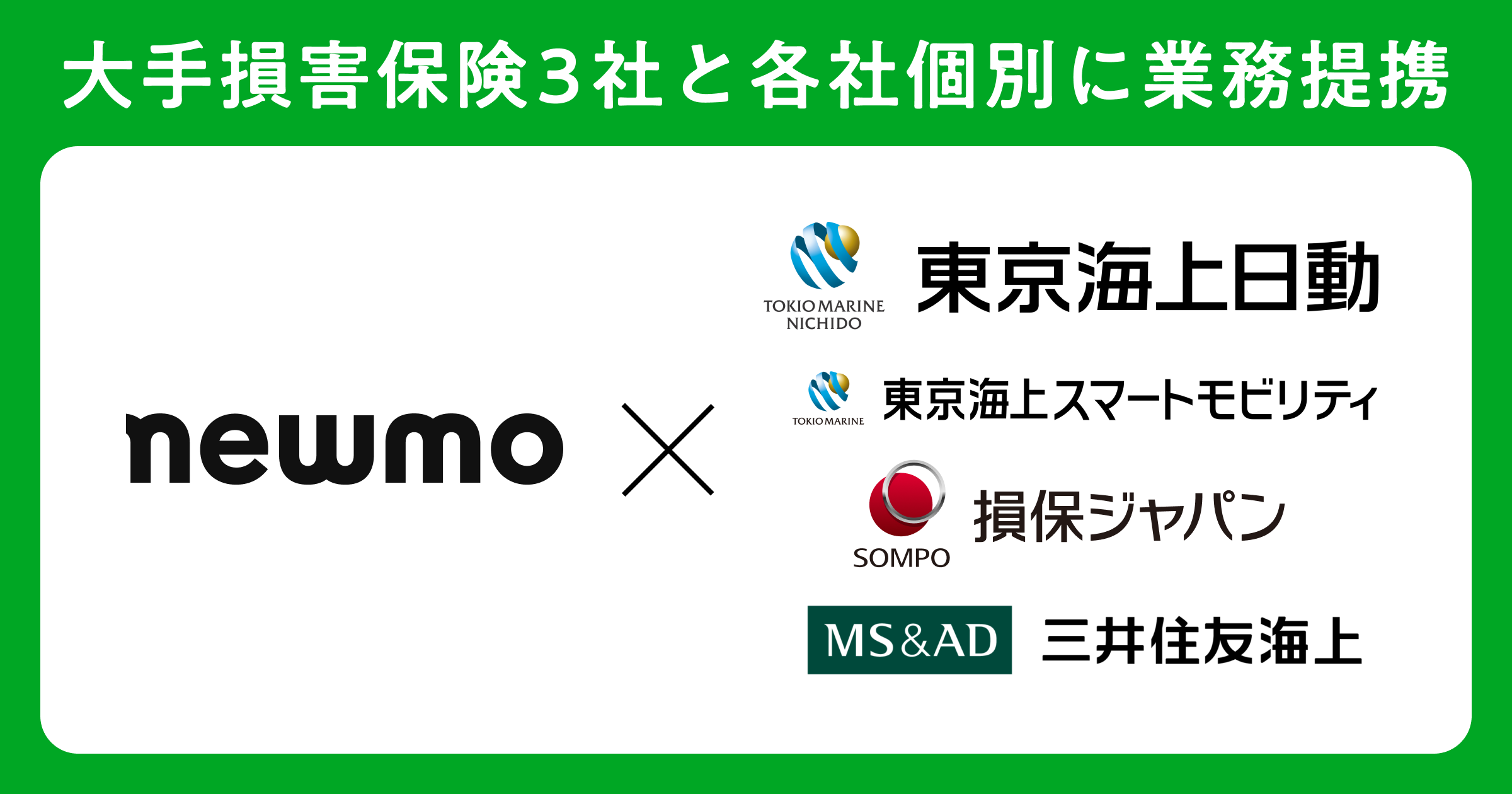 newmo、大手損害保険3社と各社個別に業務提携契約を締結 ライドシェア向け保険商品および安全促進への取り組み検討を推進