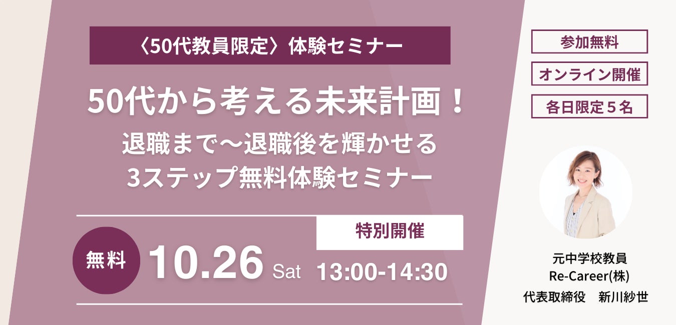 テーマ:「<50代から考える未来計画!退職まで〜退職後を輝かせる3ステップ無料体験セミナー>」
