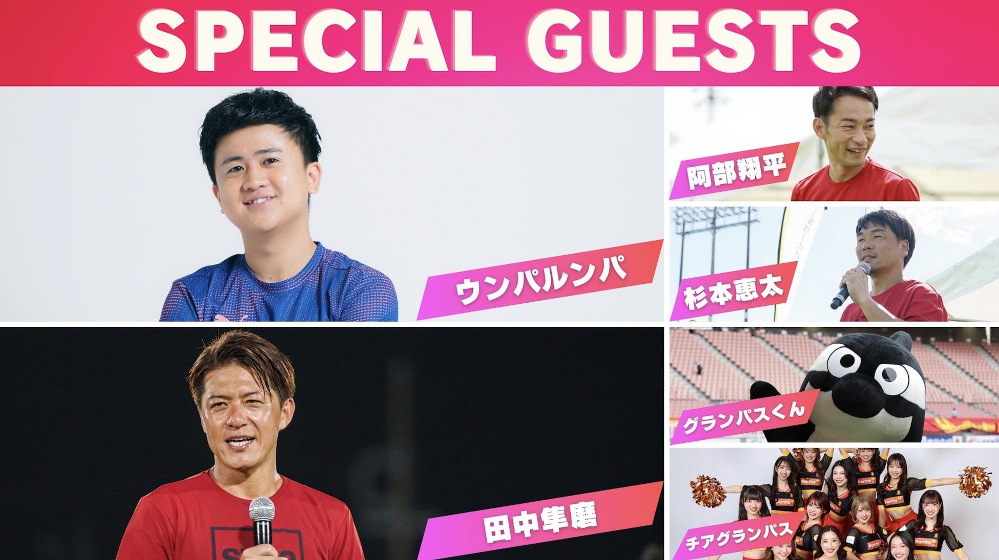 Tiktokで200万フォロワーを持つ、サッカー系インフルエンサー「ウンパルンパ」を筆頭に 田中隼磨、阿部翔平、杉本恵太という名古屋グランパス2010年優勝メンバーも参戦! さらに、名古屋グランパスのマスコット「グランパスくん」と公式チアダンスチーム「チアグランパス」 が初登場!BALL PARK LANDを大いに盛り上げてくれます