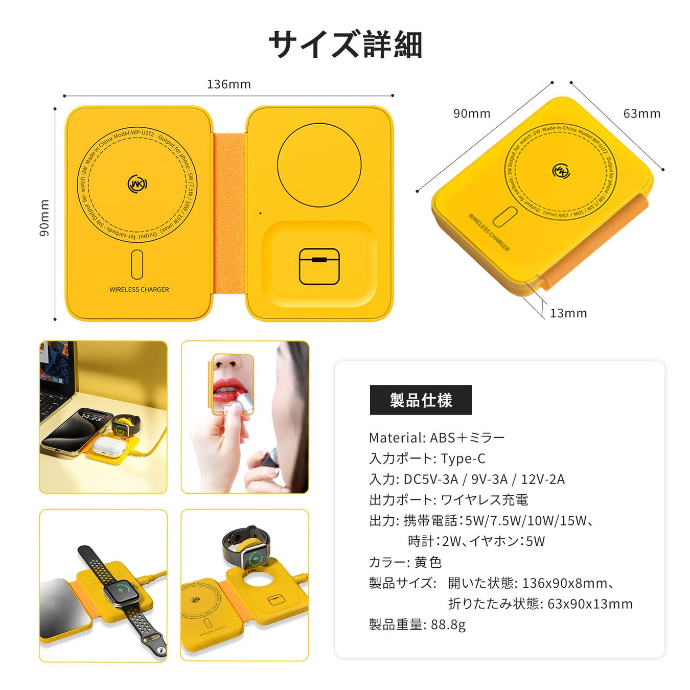 iPhone 15/14/13/12シリーズ、Apple Watch Ultra 2/1/9/8/7/6/5/4/3/2、AirPods Pro/3/2に対応。多機能で汎用性抜群のワイヤレス充電器です。