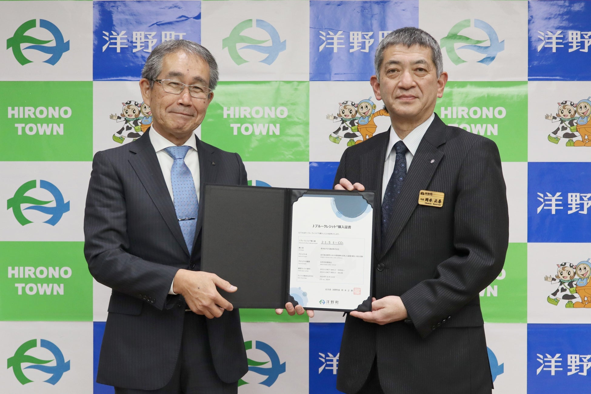 株式会社髙松コンストラクショングループ(本社:大阪市淀川区、代表取締役社長:髙松浩孝、以下当社)のグループ会社である青木あすなろ建設株式会社(本社:東京都港区、代表取締役社長:辻󠄀井靖、以下「青木あすなろ建設」)は、岩手県洋野町が実施するブルーカーボンに関する取り組み「増殖溝(ぞうしょくこう)を活用した藻場の創出・保全活動」に賛同し、Jブルークレジット®を21.5【t-CO₂】購入いたしました。