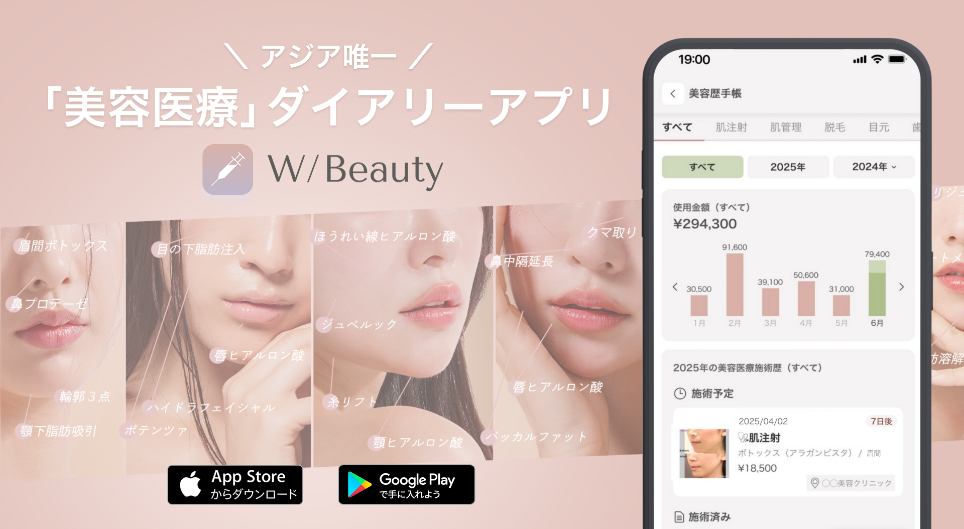 iOS:https://apps.apple.com/jp/app/w-beauty-美容医療の記録/id6526479396