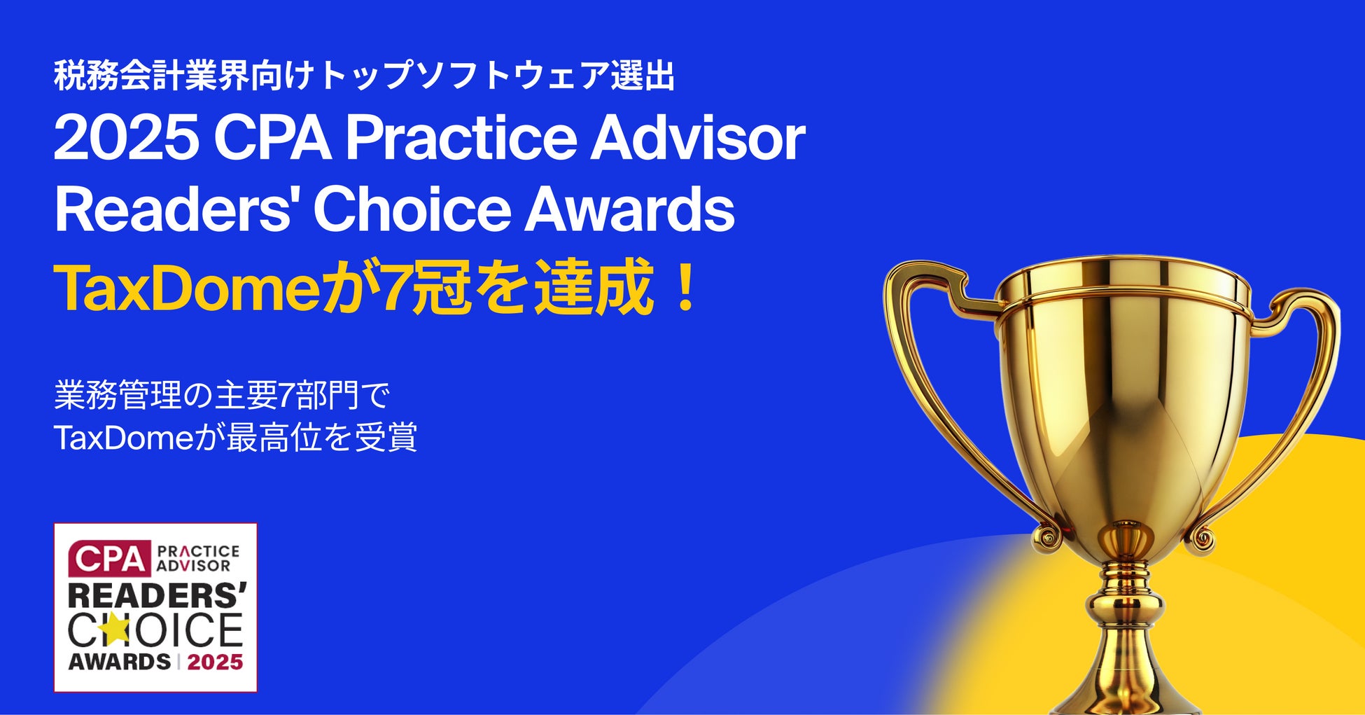 TaxDome LLC.は、「CPA Practice Advisor Readers’ Choice Awards 2025」における7冠達成を記念して、TaxDomeをお得に導入ができる特別キャンペーンを実施します。