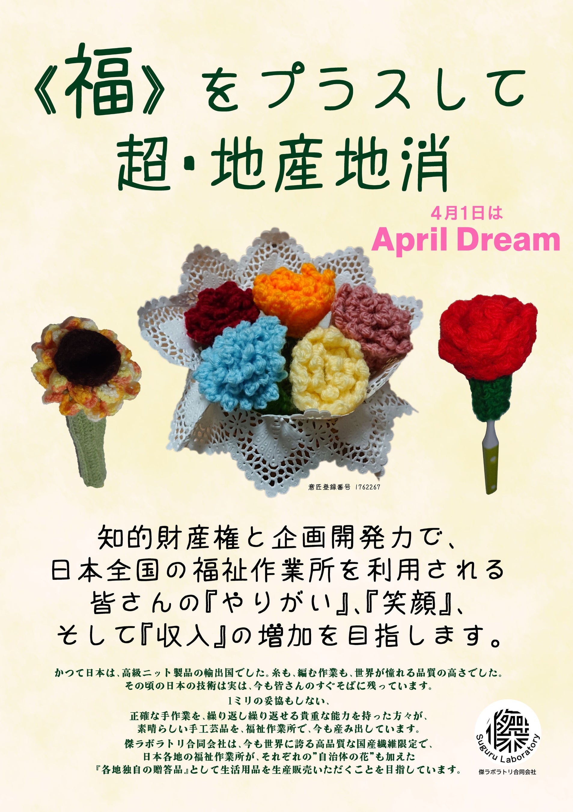 このプレスリリースは、April Dreamプロジェクトに共感し、4月1日を夢があふれる日にしようとする事業者が、やがて叶えるために発信した夢です。