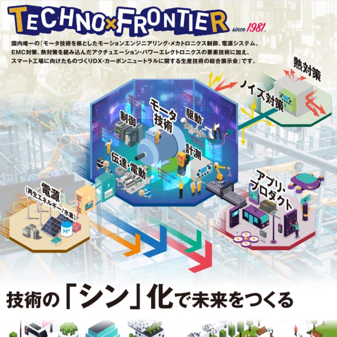 TECHNO-FRONTIERは、モータ技術を核とした日本のものづくり産業のイノベーションとソリューションを提案するプラットフォームを目指して芯化します。