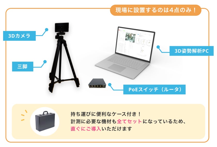 株式会社バイオネット研究所(所在:東京都立川市 代表取締役 新川隆朗)では大手建機メーカー様のご協力により開発した作業負荷自動計測システムPosCheck101が、令和5年度東京都トライアル発注制度に選定され、都立大学様をはじめ3機関にご発注いただいたことを契機に、24年2月より本格発売を開始致しました。