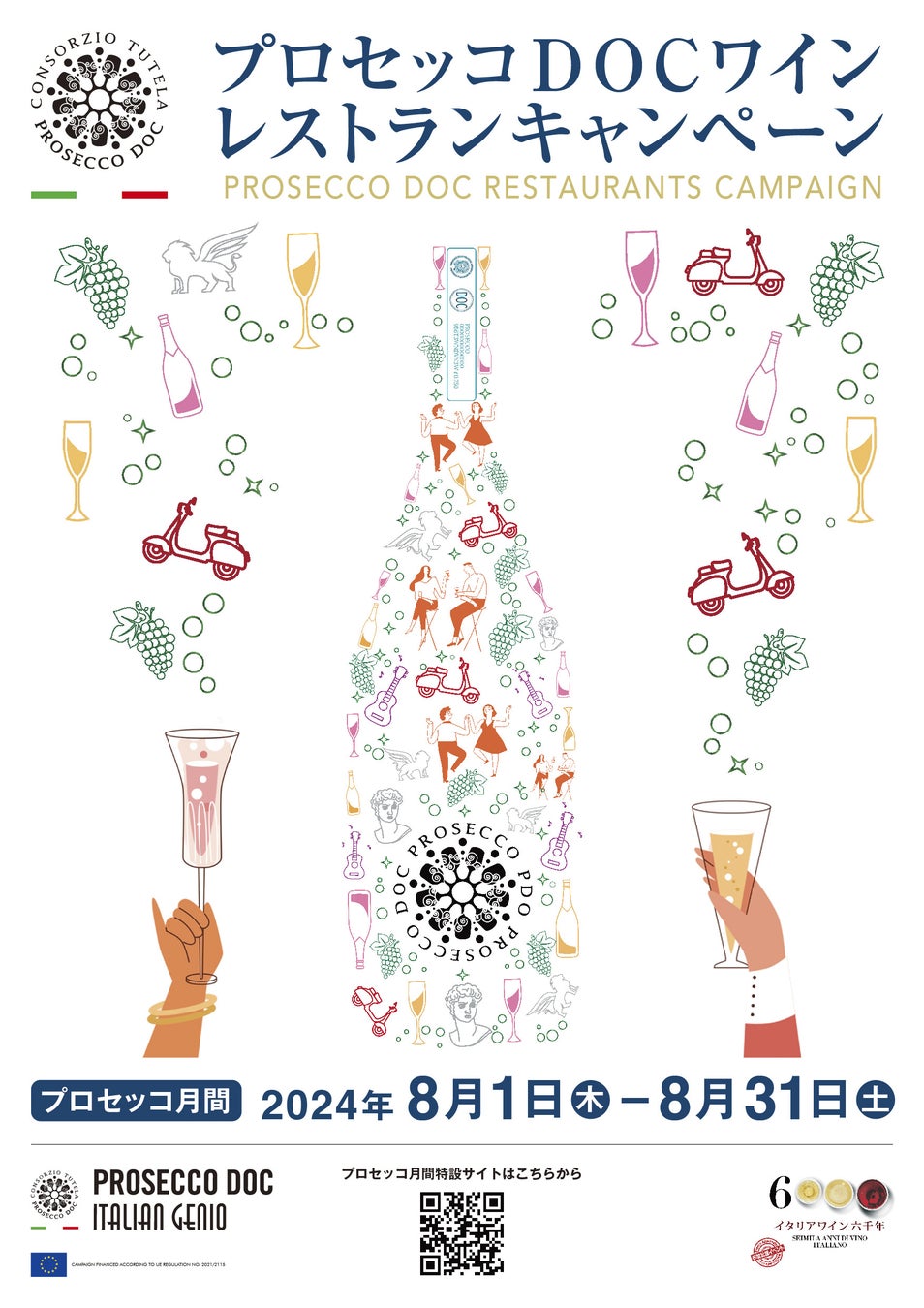 プロセッコDOC保護協会は2024年8月1日から31日まで、プロセッコDOCワインのさらなる認知度アップを目指して、オントレード、オフトレード双方において販促キャンペーン、第8回『プロセッコ月間』を実施します。
