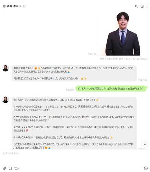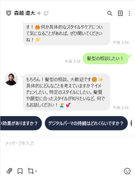顧客が来店前に自身のヘアスタイルや肌の画像を送信すると、AIアシスタントが専門的な診断を行います。これにより、来店時には個々のニーズに合わせた最適な施術プランを提案でき、カウンセリング時間の短縮とサービス品質の向上を実現します。