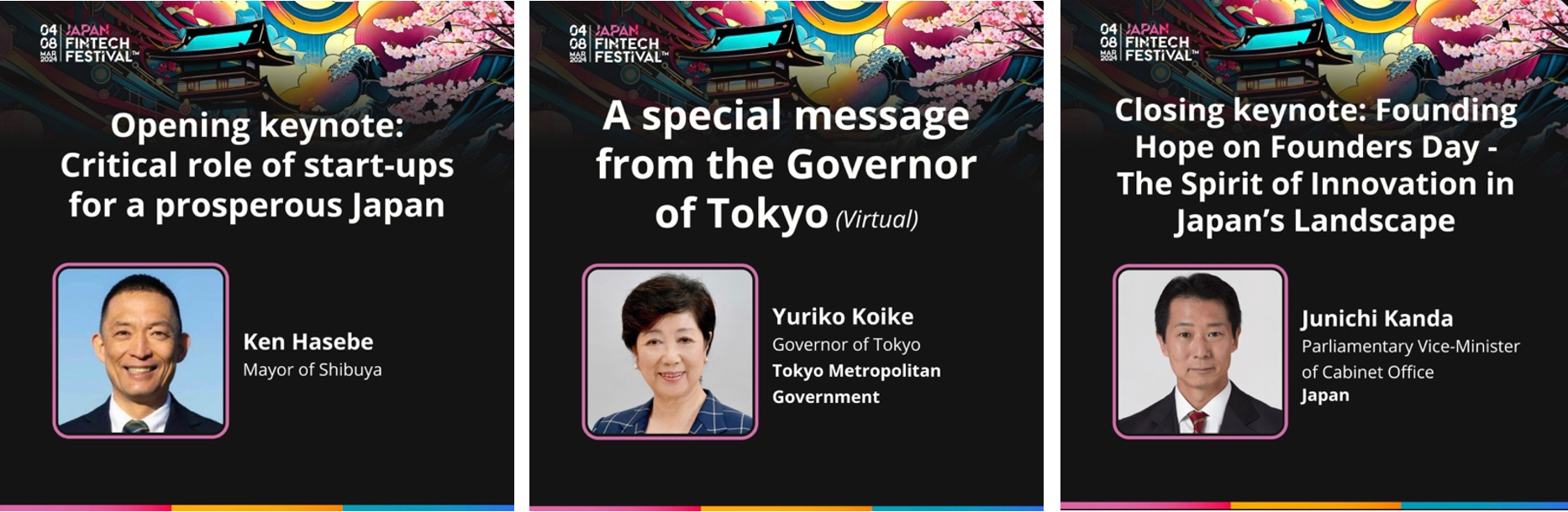 後 援:金融庁、デジタル庁、日本銀行、独立行政法人日本貿易振興機構(JETRO/ジェトロ)、シンガポール金融通貨庁(MAS、中央銀行) 、東京都、FinCity.Tokyo、名古屋市、札幌市、福岡県ほか