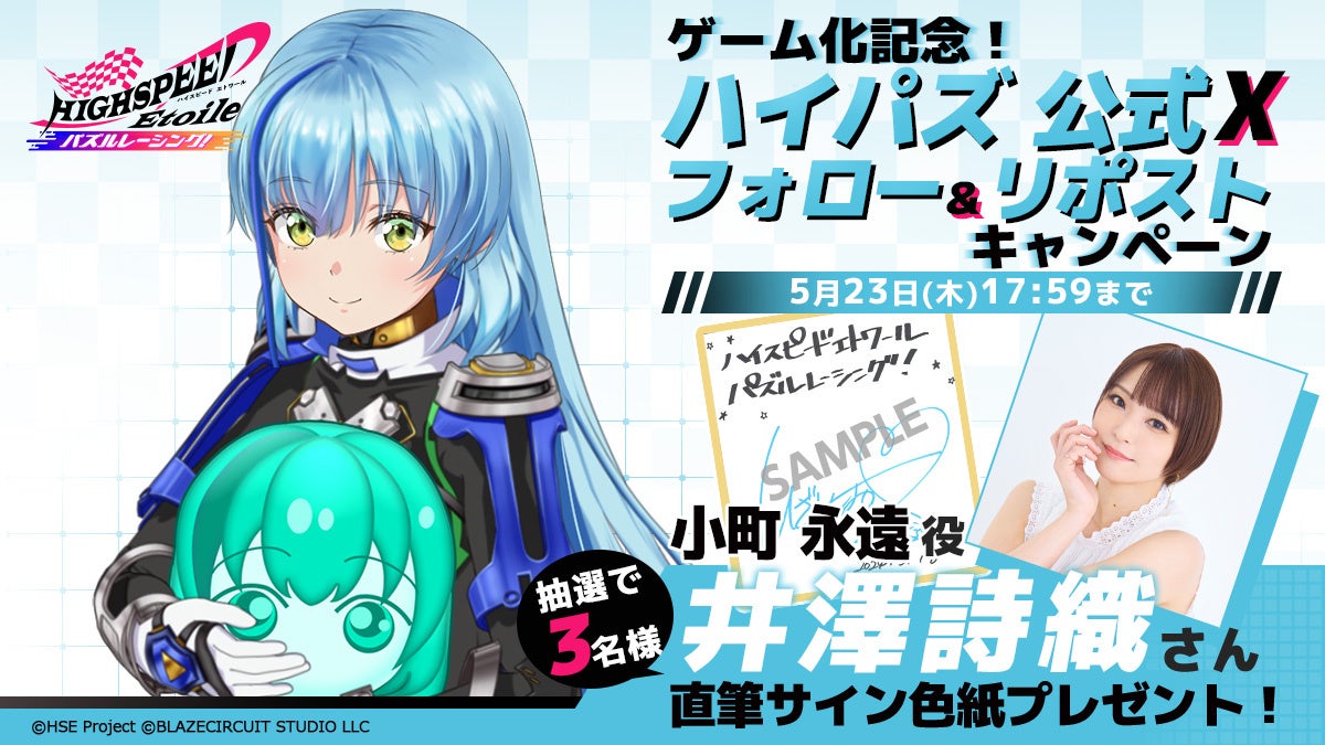 合同会社BlazeCircuit Studio(本社:東京都港区、業務執行社員:谷口 祐一郎)は、オリジナルTVアニメ「HIGHSPEED Étoile(ハイスピード エトワール)」初のスマートフォン向け公式パズルゲーム「HIGHSPEED Étoile パズルレーシング!(略称:ハイパズ)」において、2024年5月18日(土)・5月19日(日)大分県日田市のオートポリスで開催されるスーパーフォーミュラRd.2九州大会会場にて、ハイパズオリジナルノベルティを配布いたします。また会場で配布される大会パンフレットにもハイパズのゲーム情報が掲載されますので、ぜひオートポリス会場にてお受け取りください。