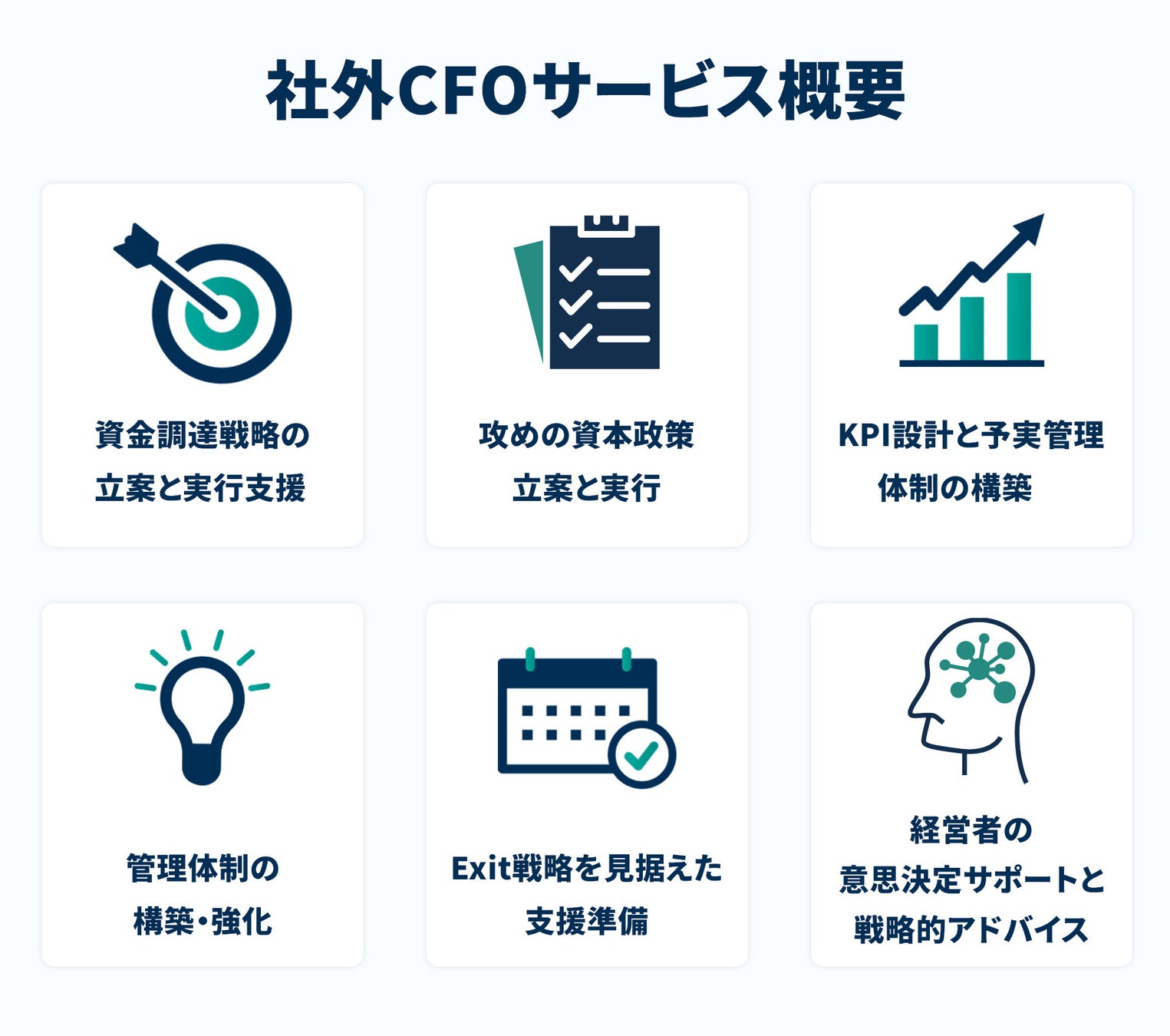 こうした深刻な状況から企業を救うため、当社はExit(IPO・M&A)を目指す急成長企業向けに、常勤CFOの1/10以下のコスト(月額10万円〜)で財務チームを外部化できる『社外CFOサービス』を提供しています。