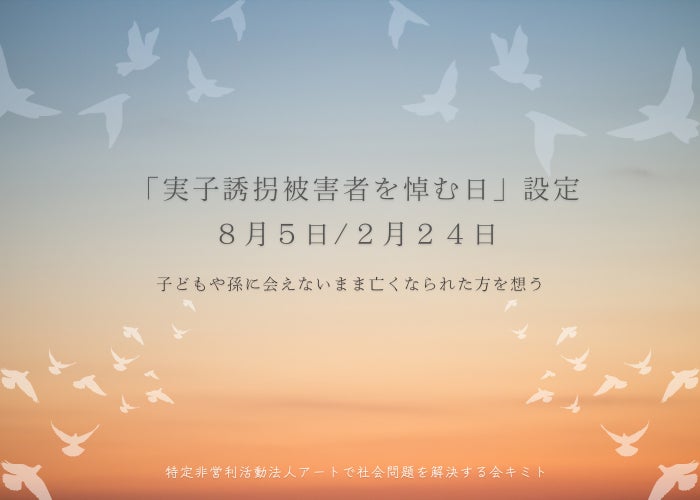 特定非営利活動法人アートで社会問題を解決する会キミト(本社:東京都中央区銀座一丁目22番11号銀座大竹ビジデン2階代表:森めぐみ)は、「実子誘拐被害者を悼む日」を制定し、亡くなられた方々に思いを寄せることを目的としたプレスリリースを発表いたします。
