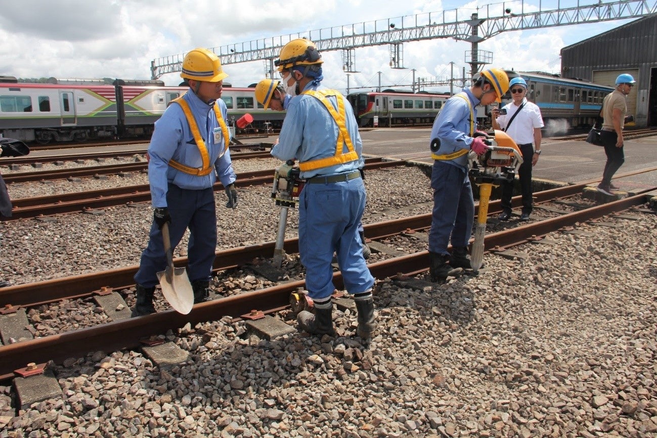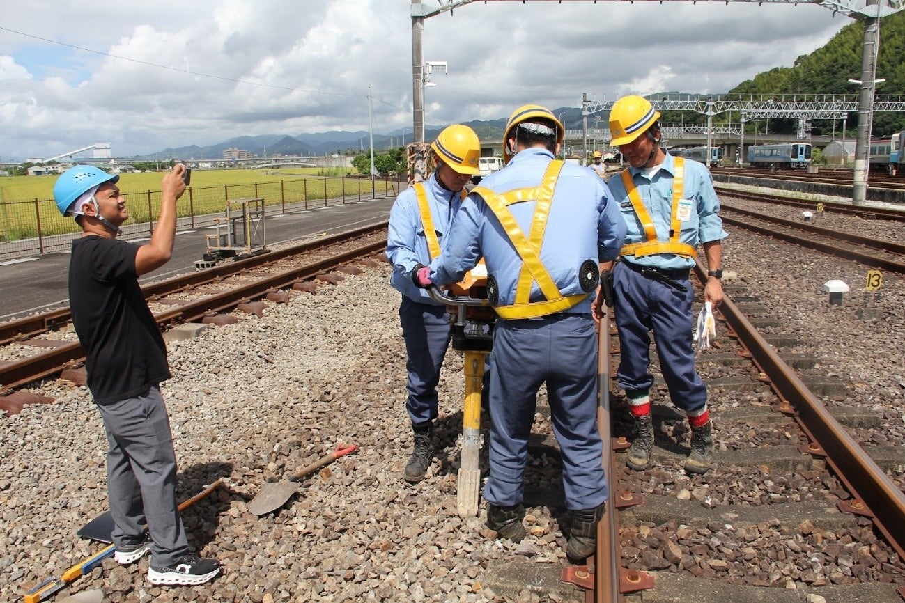 JR四国の作業風景を視察するアクランポリテクニックカレッジの学長(左)