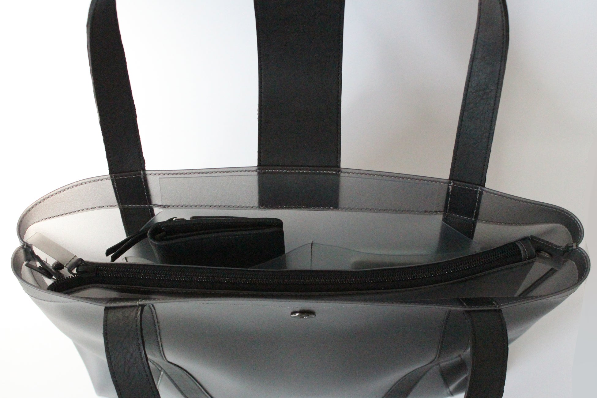 イタリア語で「LUCE」(軽い)+「UTILE」(便利)の造語から成るLUTILEは、名前の通り「軽くて便利な」バッグ。ワーキングウーマンのライフスタイル調査を踏まえ、パソコンやガジェットほか、働く女性の必需品を沢山収めても肩が凝らず、モノの在りかが直ぐに分かる半透明、PVCならではの耐性を活かしたビッグトートを開発しました。