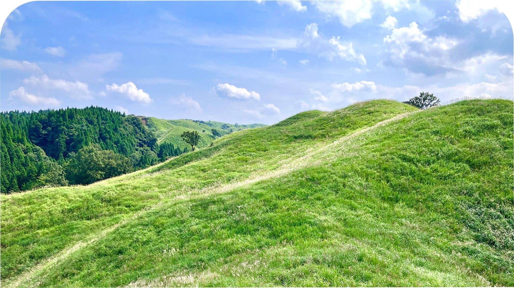 大観峰からみた草原はまるで生きているように大きくうねり、千年前と同じ雲の影がゆっくりと動く壮大な時間の経過を感じる、他にはない大きさと力強さが印象的な土地でした。