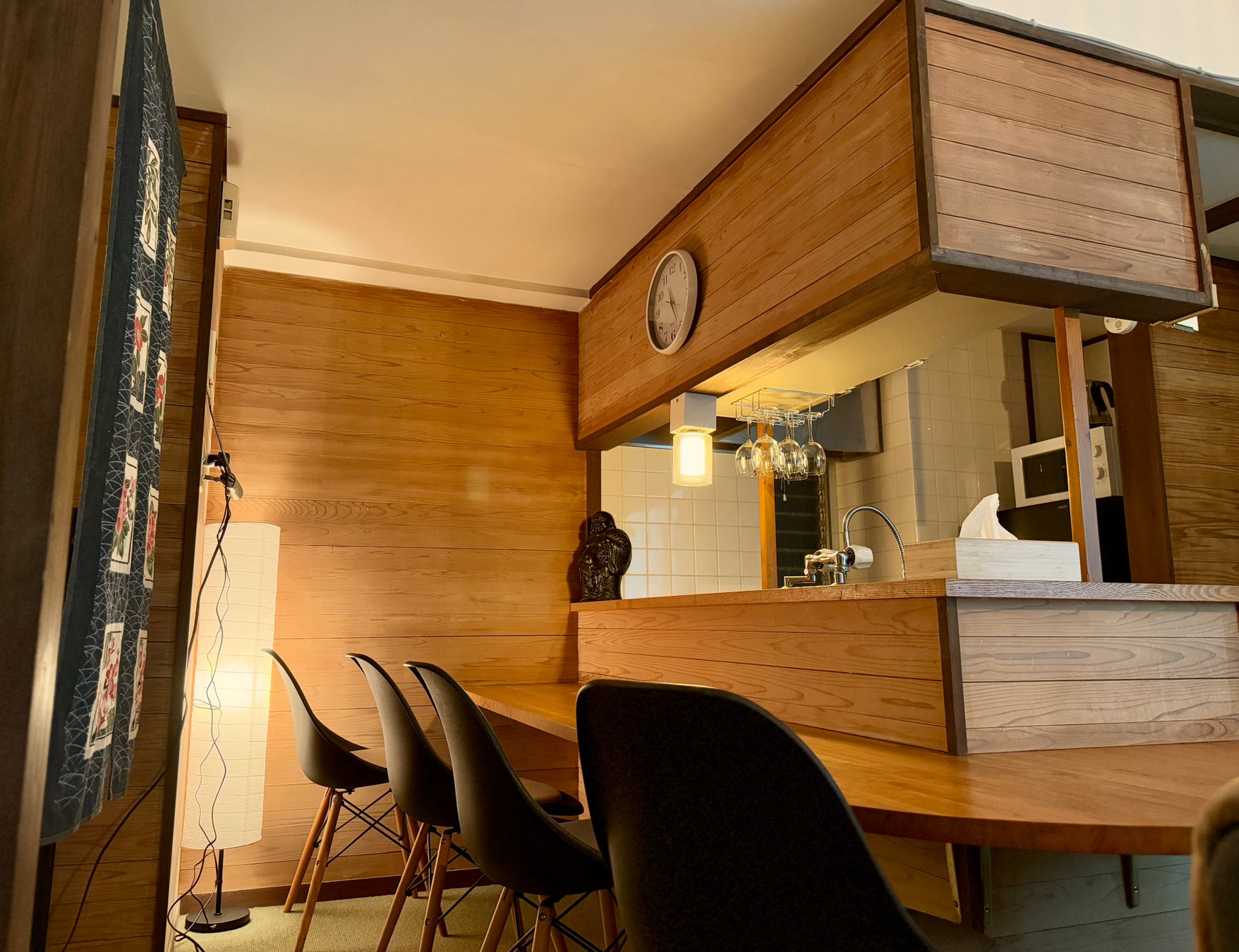 旅館ではないので、みんなで料理をしたり、テーブルカウンターで時間を気にせず食事をすることができます。