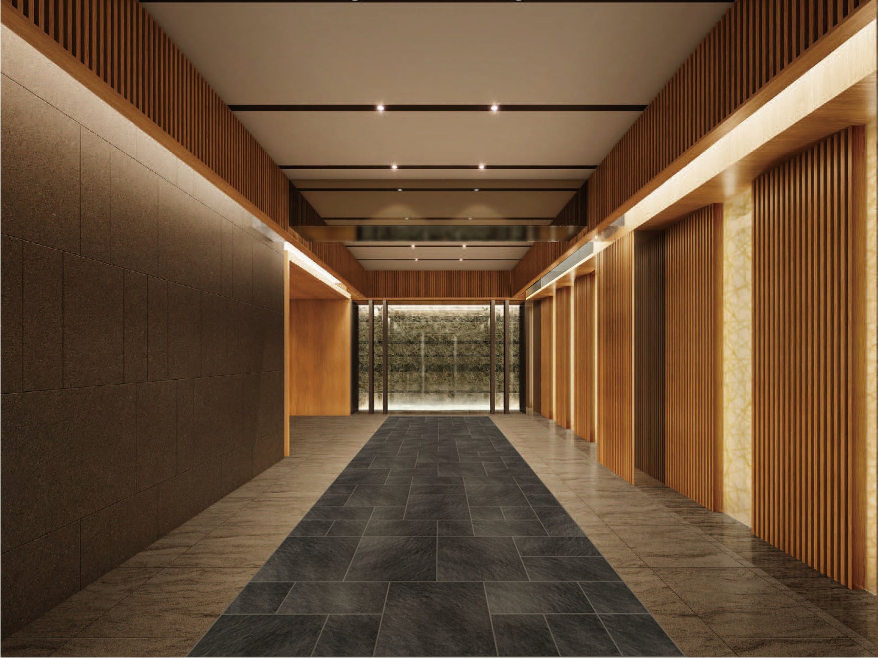 枚方の都市に新しい贅をもたらすこととなる、高級賃貸邸宅にふさわしい迎賓のスペースとして共用空間をデザインしています。