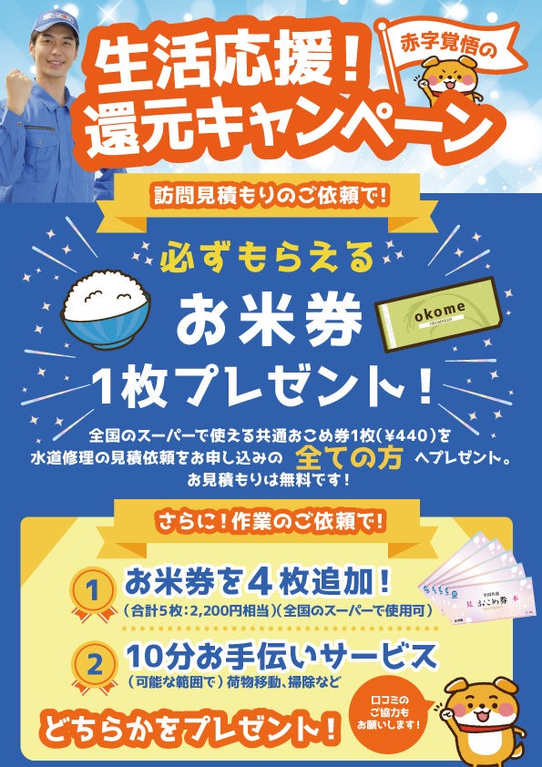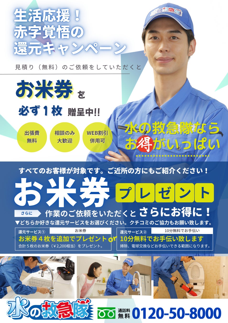 見積依頼で【お米券】プレゼントキャンペーン!|水の救急隊