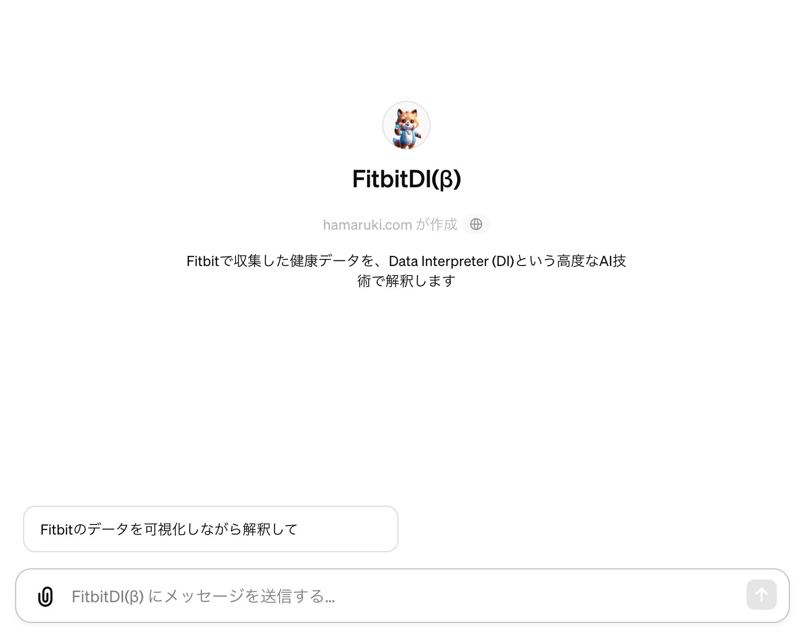 「FitbitDI」はウェアラブルデバイスであるFitbitで収集した心拍数等の生体データを元に、Data Interpreterを用いて解析を行い、ユーザーの健康状態を判定するGPTsだ。