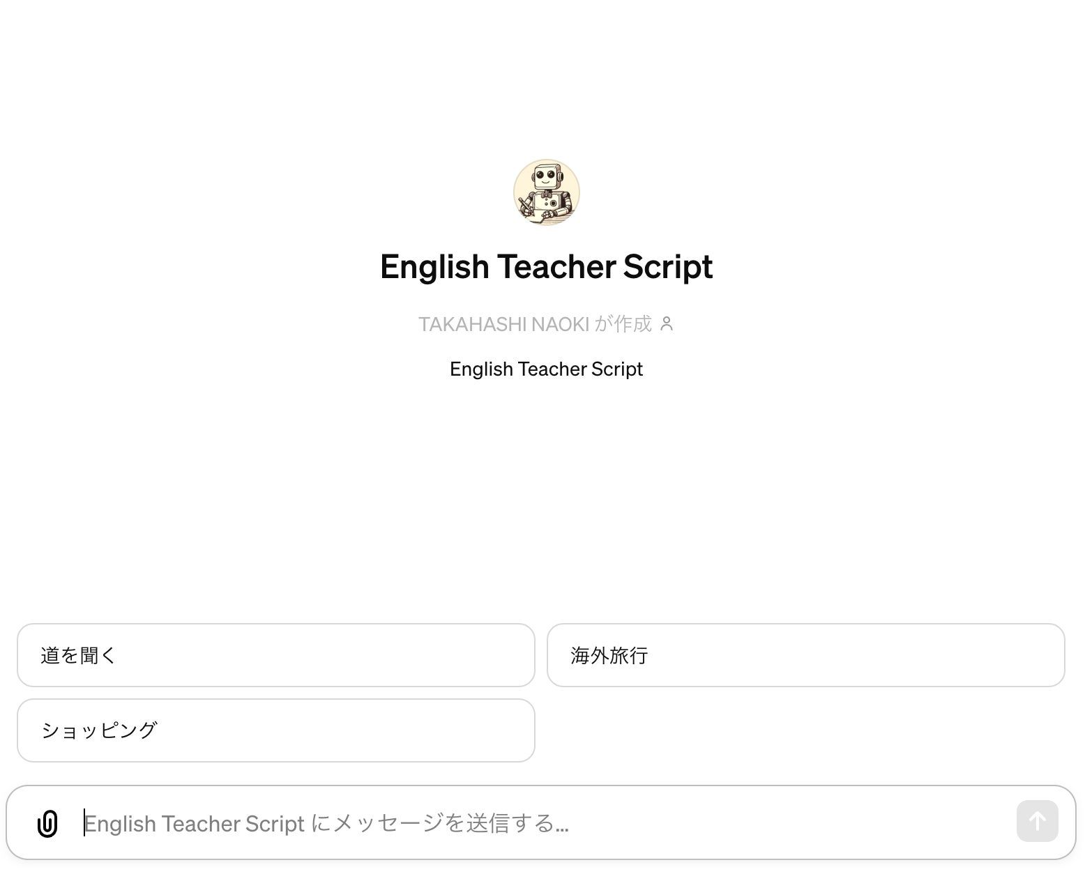 「English Teacher Script」はユーザーの入力した題材に沿って動画の自動作成に必要な台本をJSON形式で作成するGPTsだ。