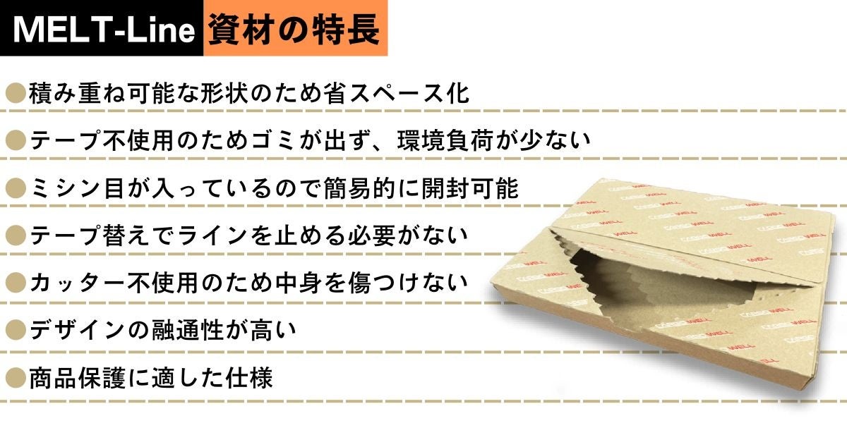 メール便箱の最大サイズ・コンパクトに対応。テープを使用しないので見た目もきれいでお客様満足度にも貢献します。