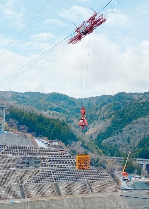 株式会社大林組(本社:東京都港区、社長:佐藤俊美)は、国土交通省中部地方整備局発注の新丸山ダム建設工事(岐阜県加茂郡八百津町、可児郡御嵩町)において、ダム建設における「自律型コンクリート打設システム」(※1)の確立に向けて開発を進めています。その第1段階としてコンクリート運搬に使用するケーブルクレーンの自動・自律運転を2025年2月に成功しました。自動・自律運転の制御信号の送受信に必要となる無線通信規格には、KDDIエンジニアリング株式会社(本社:東京都渋谷区、社長:寺尾徳明)と連携し、ローカル5Gを活用しました。