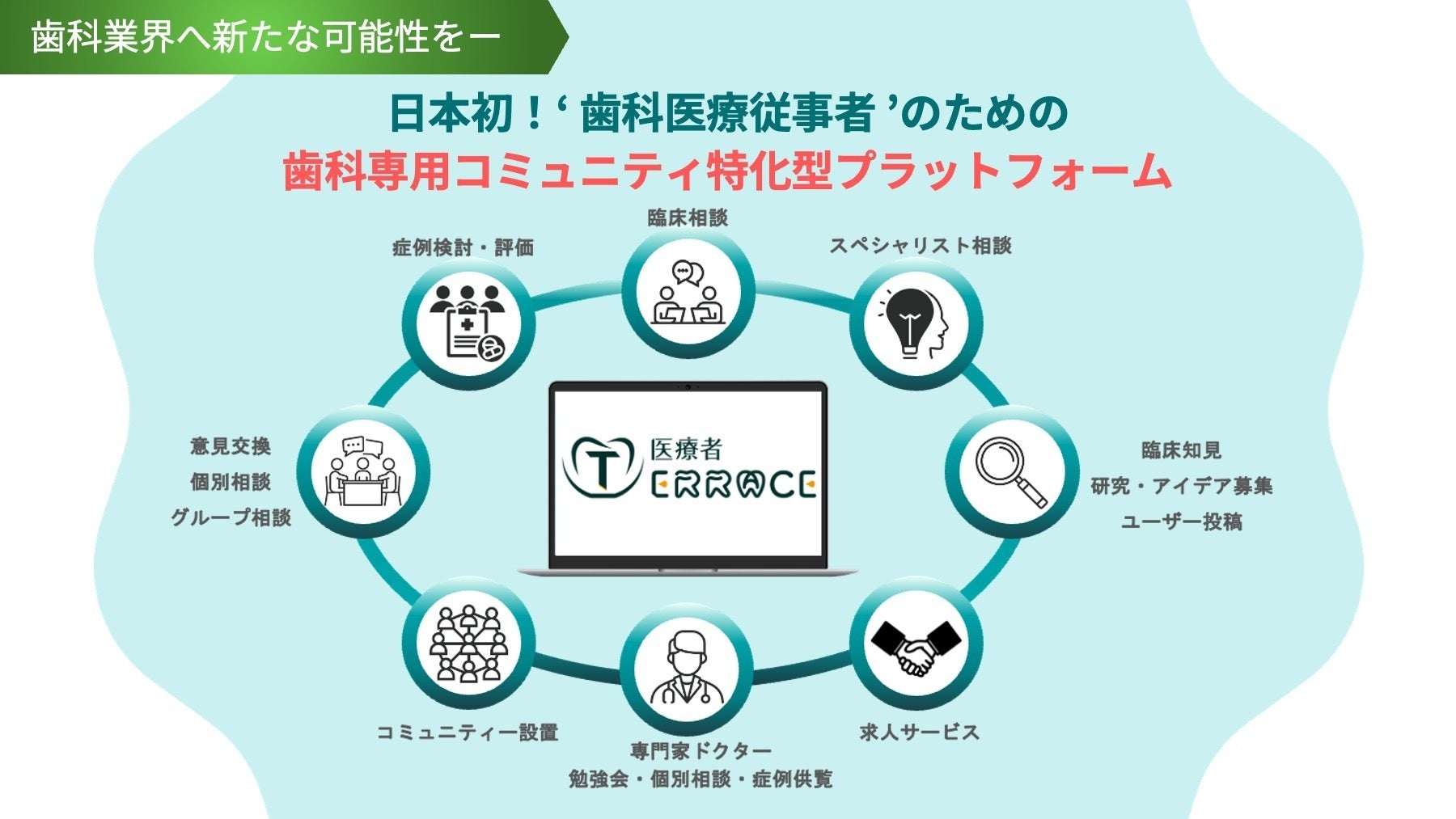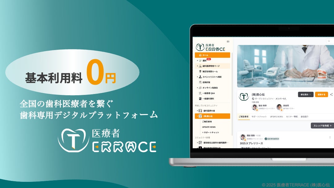 株式会社医心伝(本社:名古屋市中区、代表:西田 充)は、このたび歯科医療関係者を対象とした歯科特化型デジタルプラットフォーム「医療者TERRACE」を10月10日にプレリリースいたします。