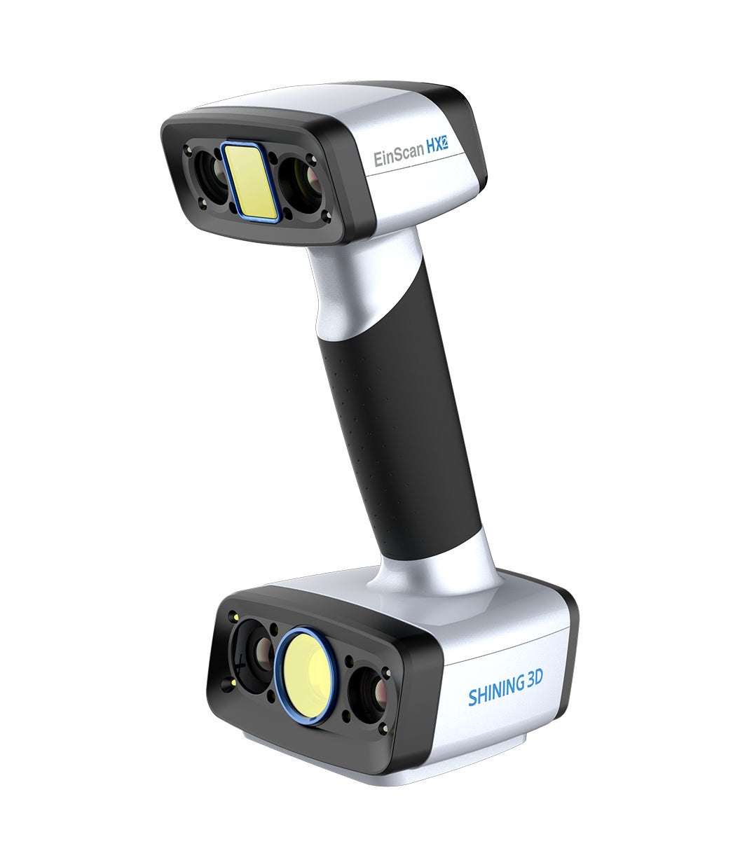 旧製品であるEinScan HXは、マーカーを使用して高い精度と金属表面の3Dスキャンを行うブルーレーザーと、マーカーレスかつフルカラーの3Dスキャンが可能なLED光源の両方を、取り回しのよいハンドヘルド形状に統合したハイブリッド・3Dスキャナーです。