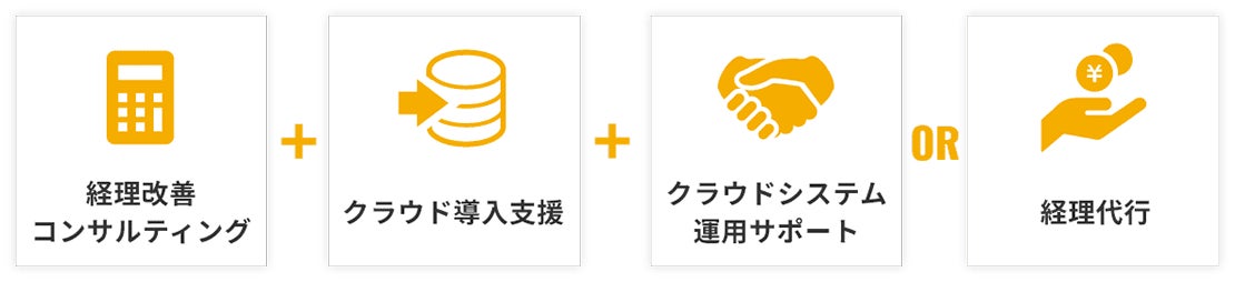 クラウドシステム導入と経理代行により経理業務を効率化する支援サービスです。