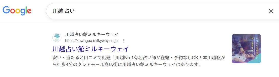 並みいる強豪を抑えて「川越 占い」で検索順位1位獲得