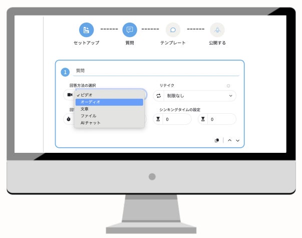 質問内容や回答方法など、より細かな項目を設定し、オリジナルの面接にカスタマイズできます。質問内容は、回答方法に関わらず自由に記述可能です。