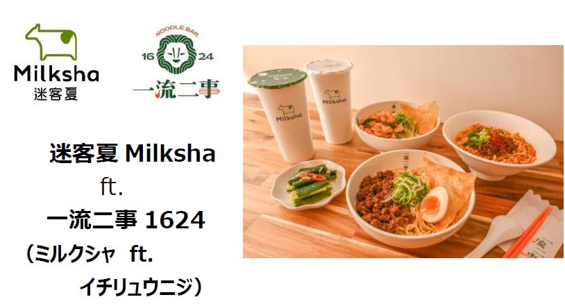 台湾で300店舗、全世界で400店舗以上を展開し、手作り・無添加の白タピオカが人気の台湾発ドリンクスタンド「Milksha」と、素椒麺(スゥジャオメン)という花椒がきいた、ピリ辛の台湾まぜそばが人気の台湾発ヌードルバー「一流二事」の複合ショップが日本初出店。本場の味を気軽にお楽しみいただけます。