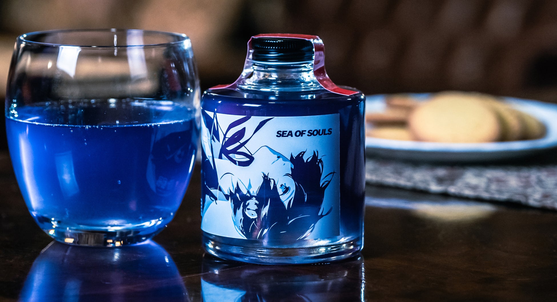 「Sea of souls」は青いコーラが主人公を彩るデザインで主人公の中に広がる心の海を表現したクラフトコーラです。